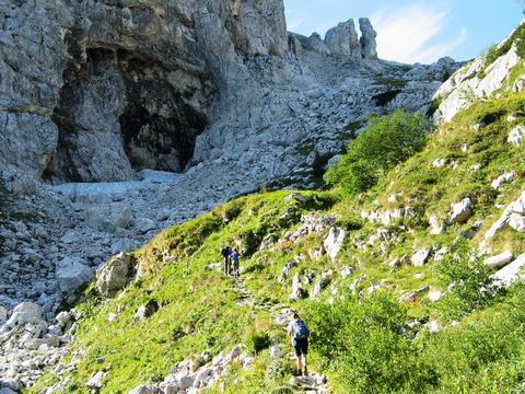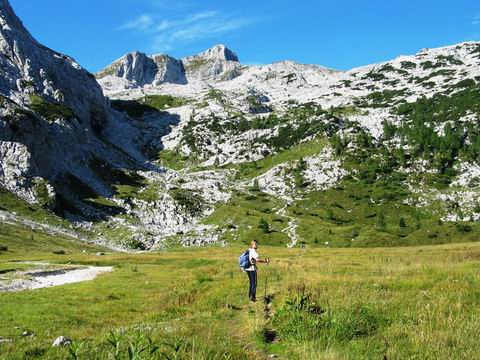 | Dostop je razmeroma lahek, pot označena, ves čas imava lep razgled na vršace Julijskih Alp in na največje ledeniško jezero v Sloveniji, ki se kot smaragd odseva z doline. Slediva markacijam, čez 15 minut prideva do planine Na Polju, kjer je neverjetno velika ravnina med vsemi temi hribi. Baje je bilo med prvo svetovno vojno tukaj v zaledju front zelo živo. |