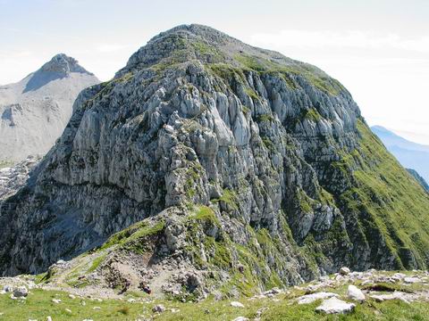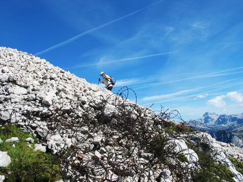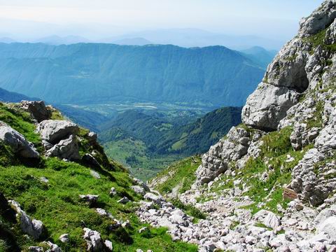 | Tukaj se na severu že lepo vidijo Julijske Alpe s Triglavom na čelu, na drugo stran pa se odpre pogled na dolino Soče. Srečava vse polno ovc, tudi rastlinje je raznih barv in oblik. |