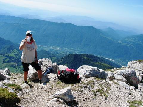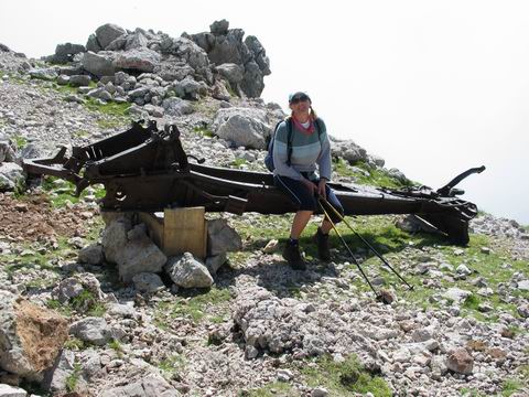 | Še pogled navzdol proti Kobaridu, kampu Lazar, Bovcu in Kaninu in ob 13:20 odhod nazaj dol proti izhodišču najine ture. Sosednjo Batognico bova pustila za naslednjič, zanimivo je podnožje topa, ki je kot spomin na nepotrebno vojno ostalo na gorskem sedlu. |