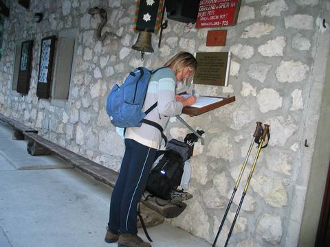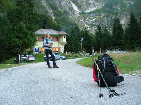 | Odločitev je padla. No ja, Mana se je spomnila, da greva tokrat v hribe, na Krn. Vreme za vikend je napovedano idealno za take podvige, sončno, temperature od 15 do 20 °C, brez vetra. Od doma greva ob 18 uri v petek po službi. Mimo Kranjske gore, Trbiža in preko Predela nekaj kilometrov pred Bovcem zavijeva levo v dolino Trente. Po dobrih 6 km je ostro desno odcep za kamp Klin, mimo njega pelje sicer dokaj ozka, vendar lepa asfaltna cesta v dolino Lepene. Srečevanje z nasproti vozečimi vozili ne izgleda problematično, potrebna je le določena mera pazljivosti pred nepreglednimi ovinki. Zvečer ob 20 uri, ko se voziva po ne preveč strmem klancu navzgor, ne srečava nikogar. Še toliko bolje. Parkirava kakih 20 metrov pod domom dr. Klementa Juga (690m) ob cesti na enem od redkih dokaj ravnih prostorov (13,682 E / 46,30423 N). Že v temi pogledava še v dom, tam me seveda takoj premami domača jota. Njami, odlična kuharica. Prijazna oskrbnika sta iz Idrije. Dom je odprt od začetka junija do konca septembra vsak dan, v oktobru ob lepem vremenu ob vikendih. Spanje v popolnem miru v objemu gora. V trenutku pozabim na morje. |
