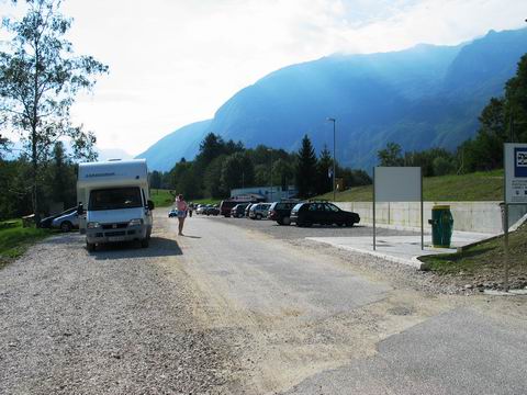 | No, še prej greva pofirbcat tako opevan štelplac pri spodnji postaji gondolske žičnice. Nad videnim sem kar nekoliko razočaran. Pričakoval sem urejen asfaltiran parking za avtodome, namesto tega je tam z osebnimi vozili zaparkiran makadamski parking, na katerem je na začetku montirana že znana zelena greznica. Verjamem, da ga bodo še dokončali in bo vreden svojega imena. Odkril sem celo elektro omarice, če se bo kdo kdaj priklapljal, naj ima s seboj ustrezen Euro priključek. |