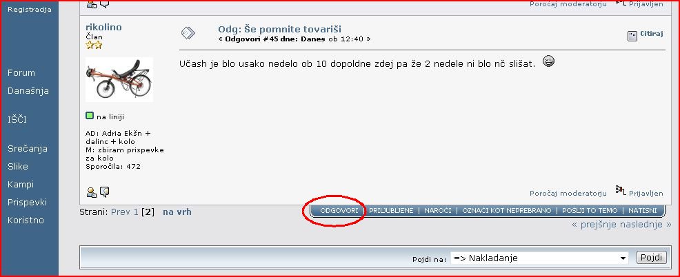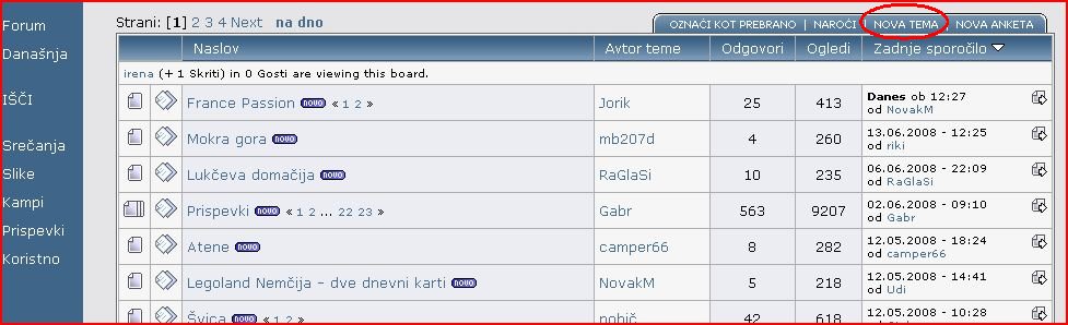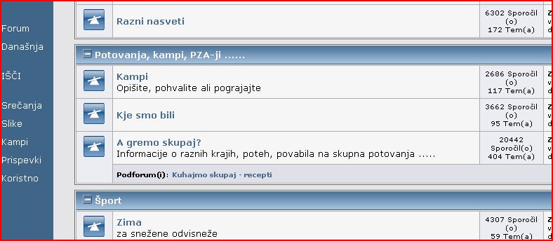 Izberete in kliknete na ustrezen forum npr. na spodnji sliki "Razni nasveti", Kampi", Kje smo bili" ....