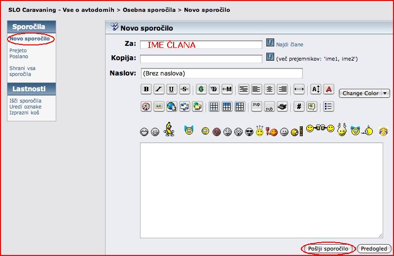Kadar želite poslati sporočilo drugemu članu foruma lahko to storite tako,
