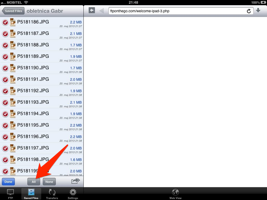 izbereš posamezne slike ali klikneš na "All" da izbereš vse