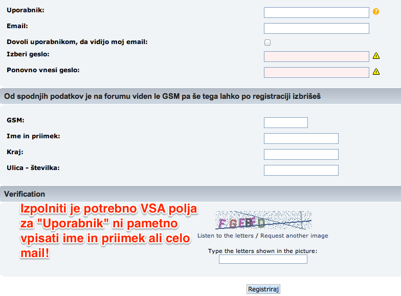 zahtevanih podatkov se vaša registracija enostavno briše zato ne čakajte na