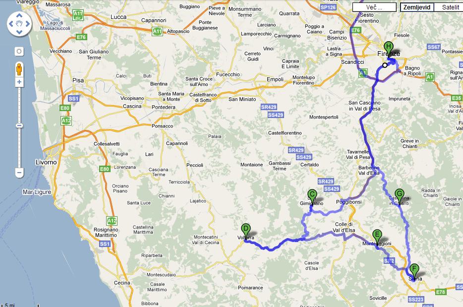 Za izhod iz Firenc se z garminovo Maričko kar ne moreva zmenit kdo bo komandiral, nakar končno najdemo izhod in nekaj cest poznamo skoraj že na pamet. Človek bi pričakoval, da se bo v tako veliko mesto pripeljal in odpeljal po široki cesti kot gospod pa temu ni ravno tako.