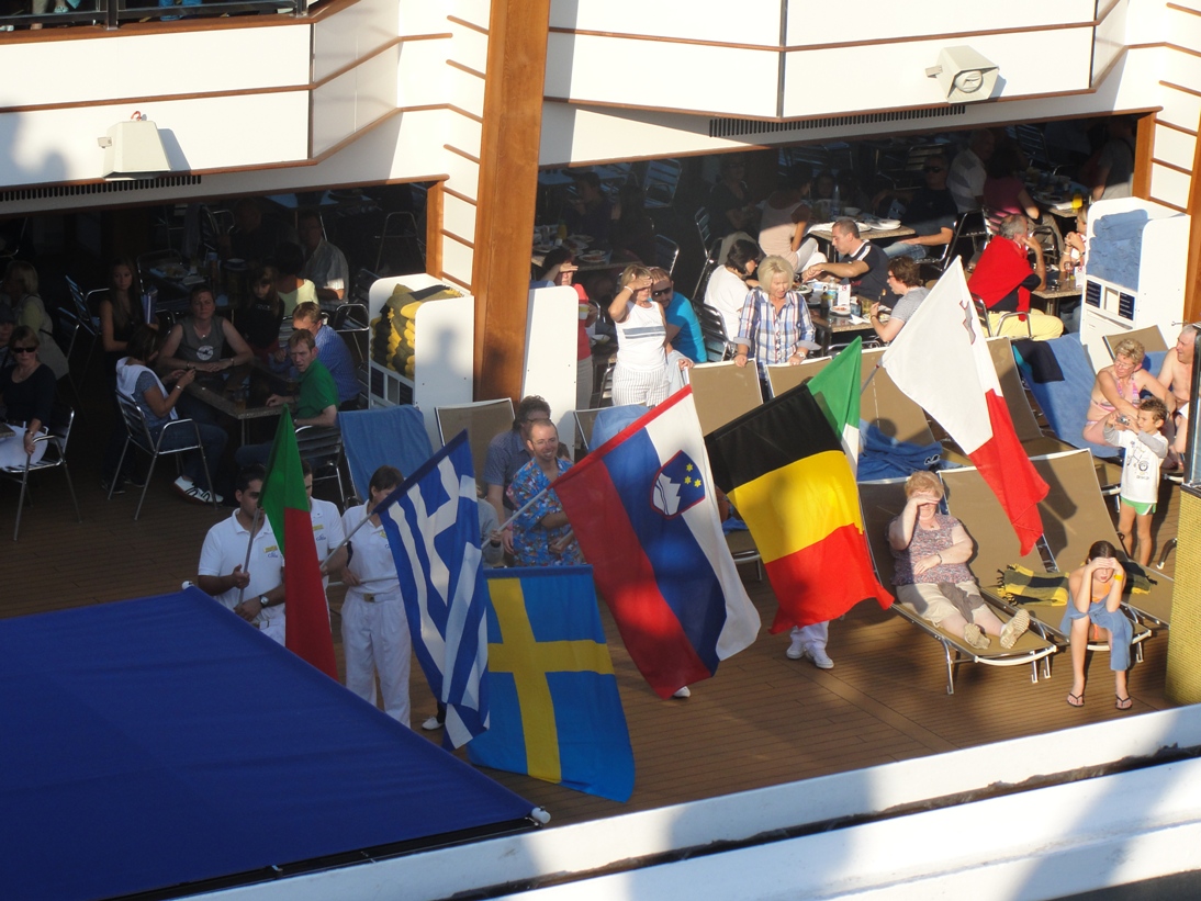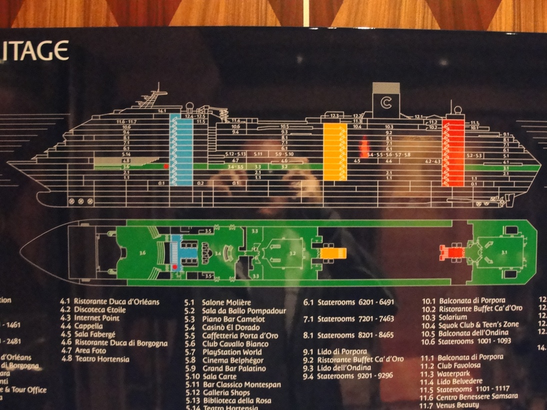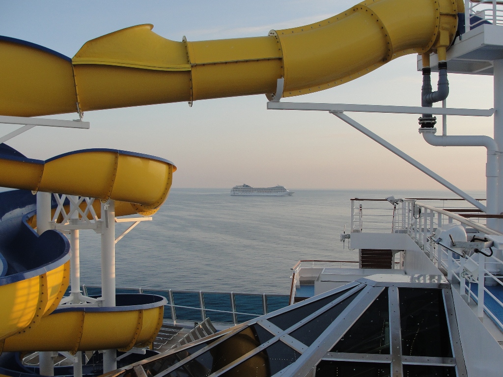 Prva noč in dan sta minila v znamenju plutja in prilagajanja na novo okolje. Zaradi ladjine velikosti se vsak sprehod zaključi na nepredvideni lokaciji. Ups, kje smo pa zdaj? Tudi na zibanje ladje in šumenje motorjev smo se v prvih dneh počasi privadili. Večerni sprehodi in obiski teatra so bili stalnica, za kurjenje odvečnih kalorij pa postanki v fitnesu in savni.