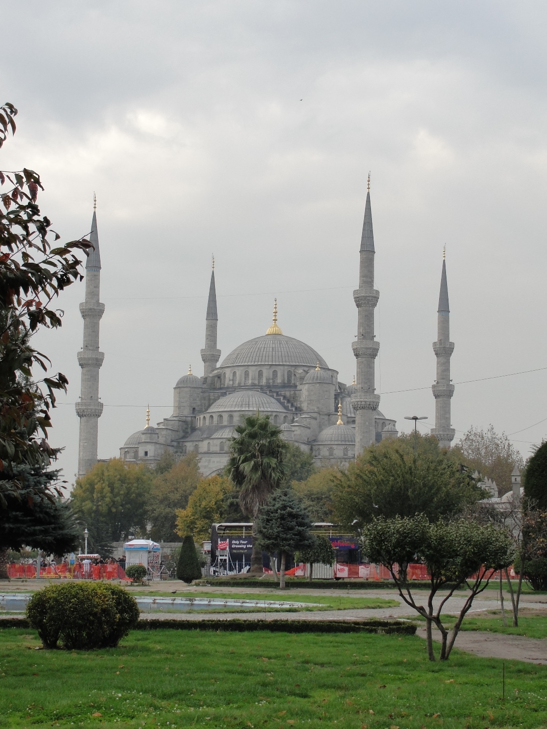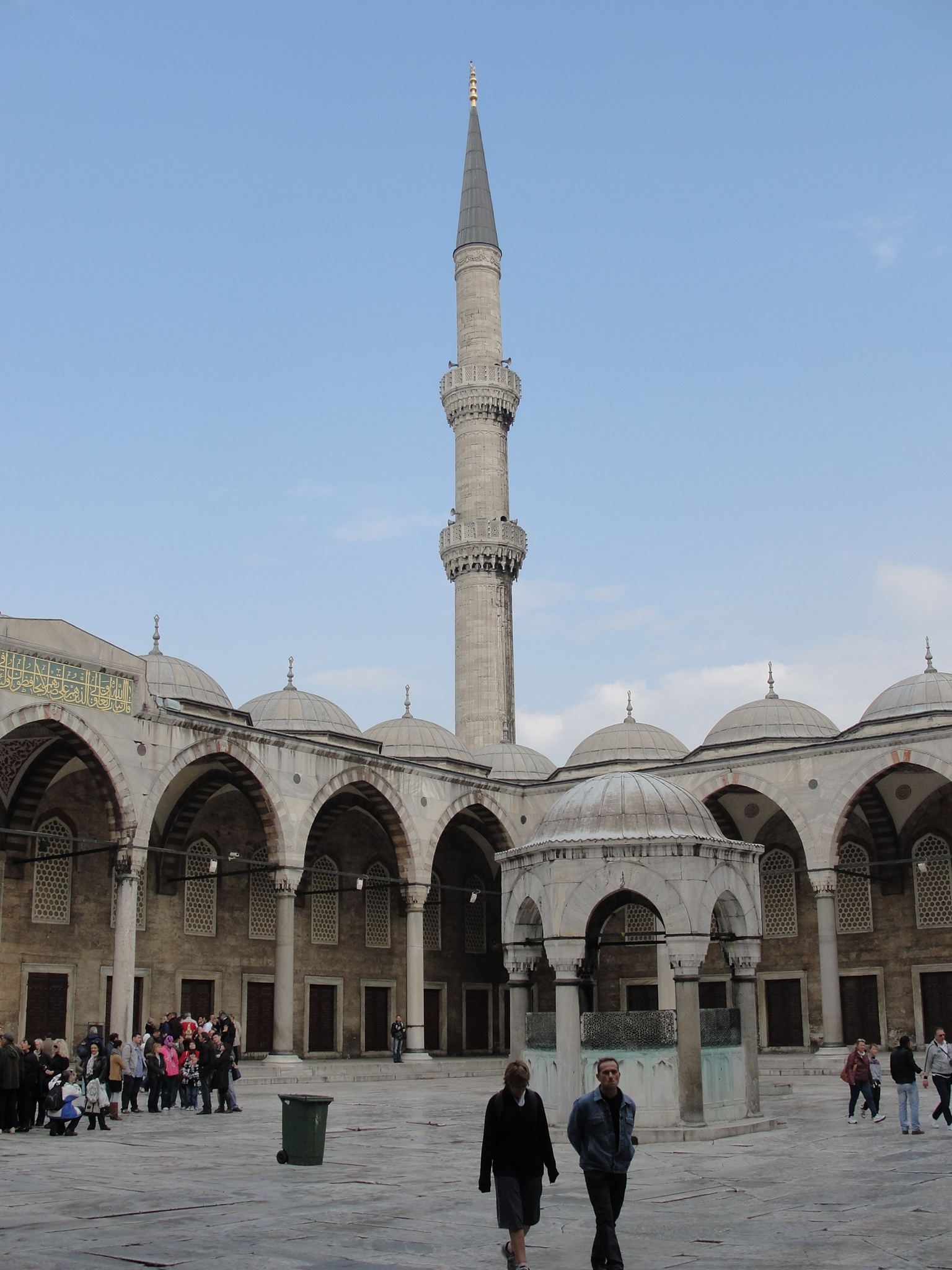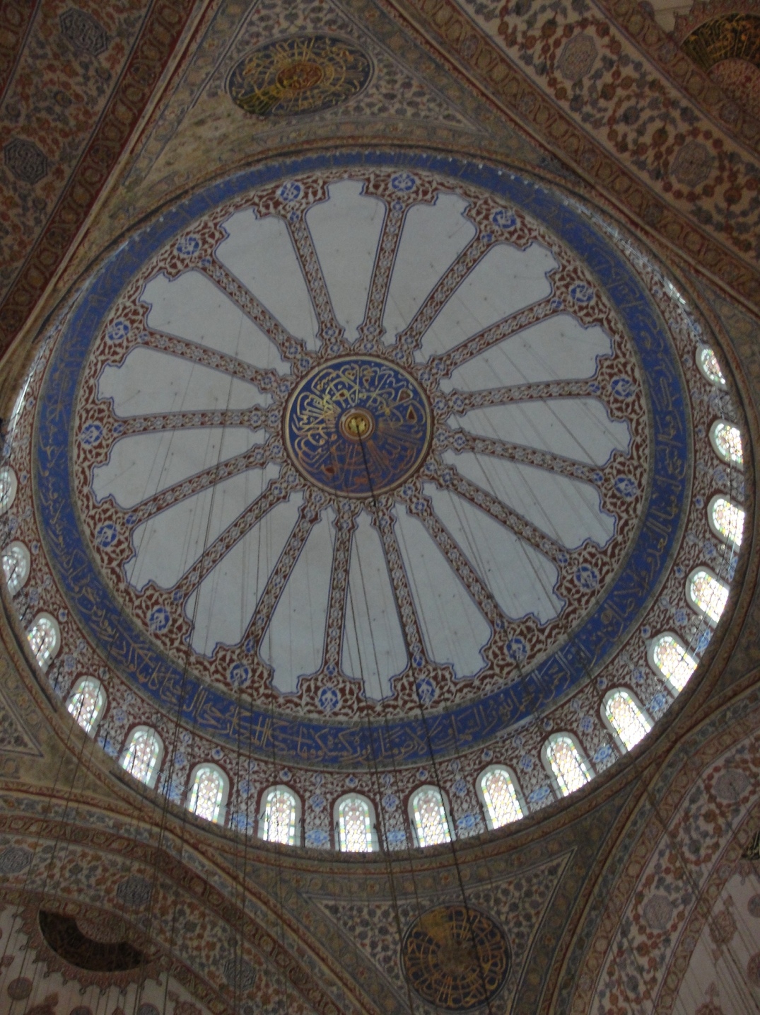 Značilnost Modre mošeje je 6 minaretov in njena modra notranjst. Ob vstopu se sezujemo in sprehodimo po mehkem tepihu ter občudujemo “freske”. Po ogledu nas je Alah nagradil s sončnimi žarki, pa čeprav ne za dolgo.