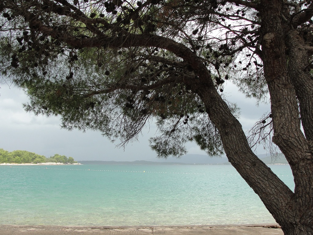 Od Nina se nam je cesta kar vlekla in po poti smo študirali, da smo »frajerji«, da si za premik izberemo ravno soboto popoldan. Ampak kar je je! Smuknemo v Kamp Šimuni, ki je za razliko od kampov v Dalmaciji nabito poln. Kamp ponuja praktično ves luksuz, ki pa ga mi ne potrebujemo in malo se nam že kolca po Murterju.