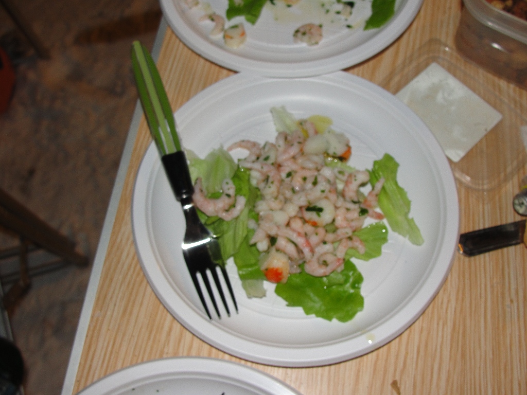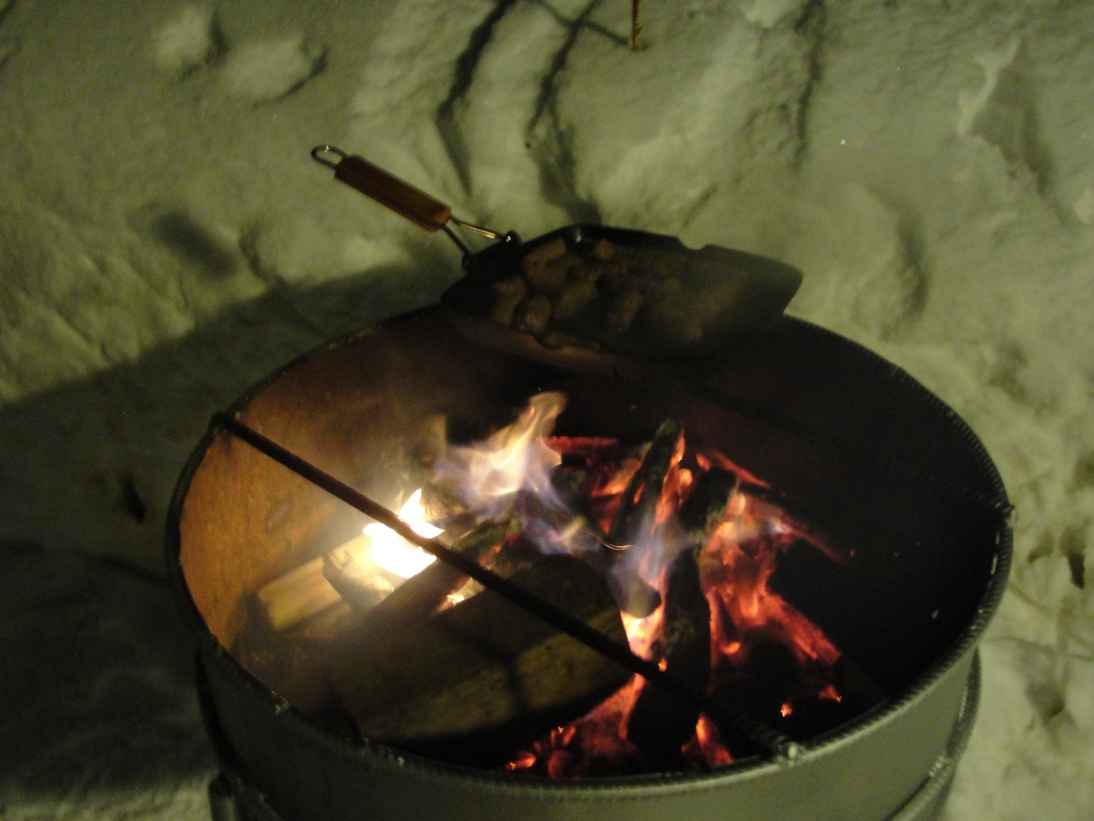 Ko pospravimo vso kramo moški pripravlimo večerjo na žaru.. Zebe nas kot »cucke« in prepričani smo da je vsaj -15 stopinj. Pogled na termometer pokaže -3. Ko imamo polne želodce se izkaže, da je bil občutek mrazu posledica lakote. Ja pa kakšen »per« je bil tudi v riti. Utrujenost in napol prespana noč sta vzroka, da nas kmalu vzame v zaslužen spanec.