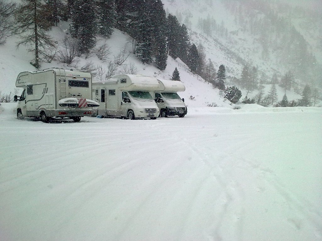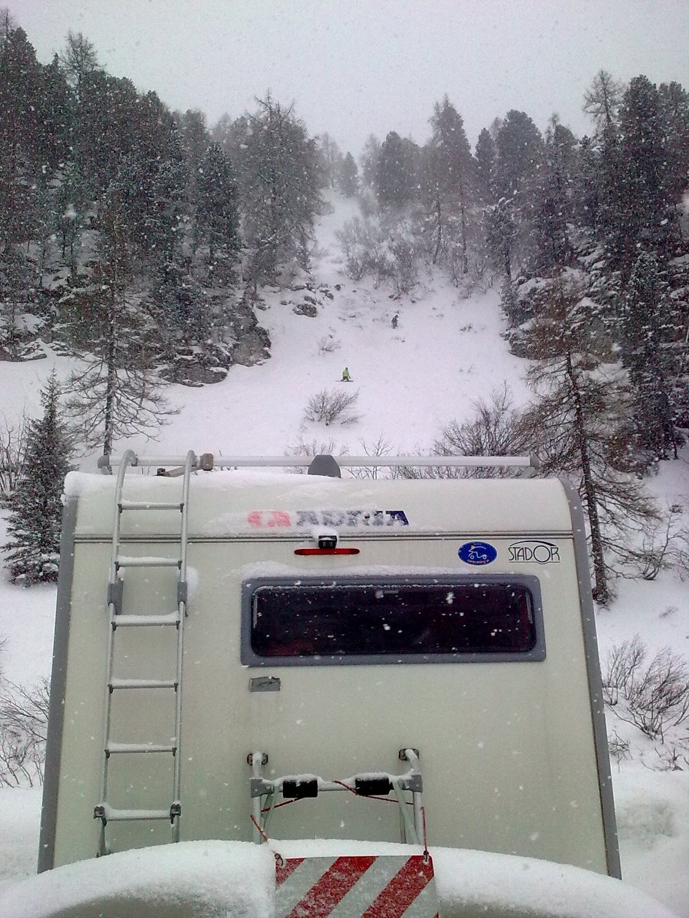 Če smo se na prvega zbudili v sončno pravljico smo se na drugega v snežno. Zjutraj so drobcene snežinke po strehi škrabljale kot majcene mišje nožice. In drobcene snežinke so postajale čedalje večje, zato smo se kar valjali na toplem po kamperjih.